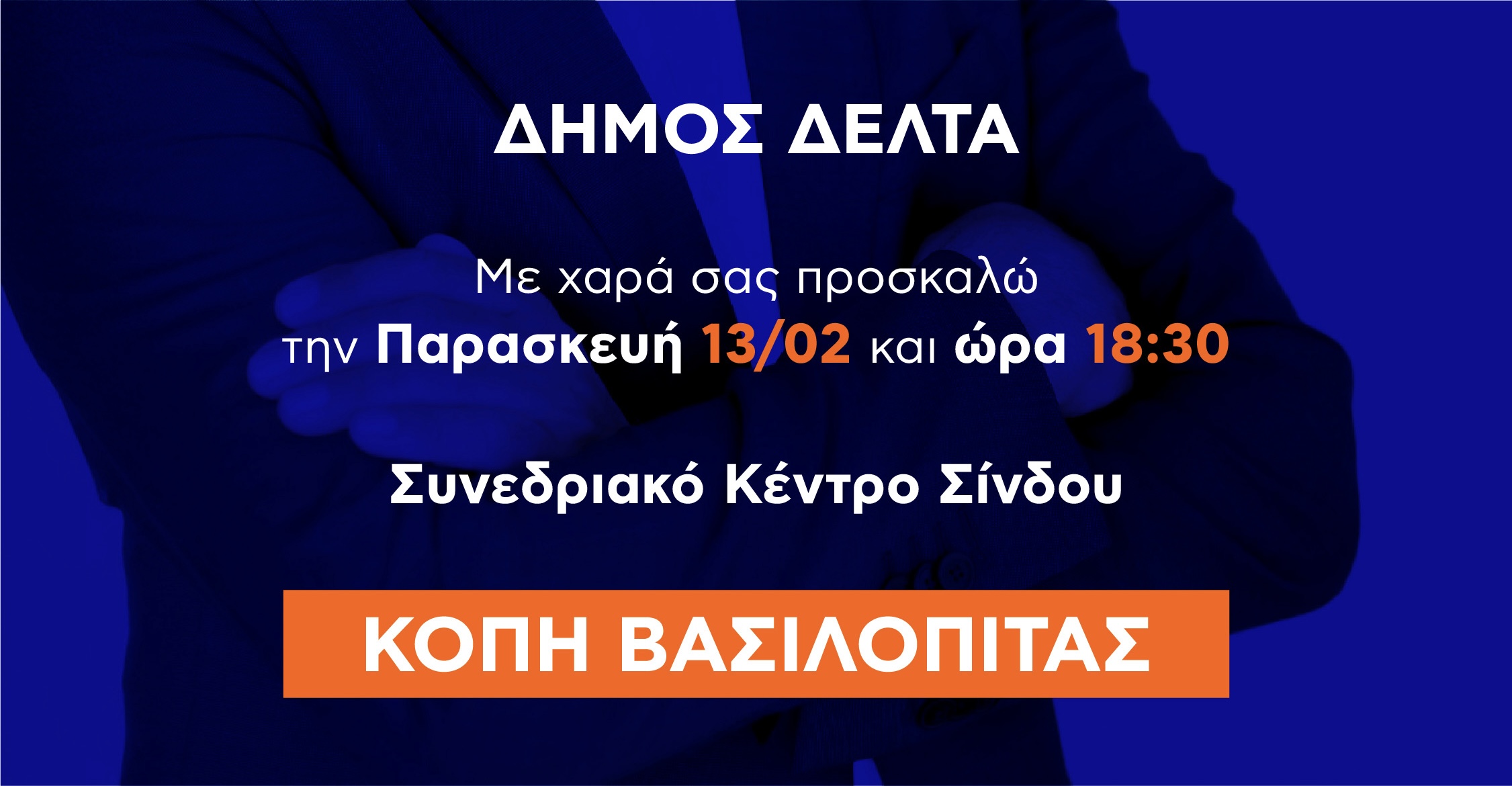 ΠΡΟΣΚΛΗΣΗ ΚΟΠΗΣ ΒΑΣΙΛΟΠΙΤΑΣ • ΔΗΜΟΣ ΔΕΛΤΑ (ΣΙΝΔΟΣ)!
