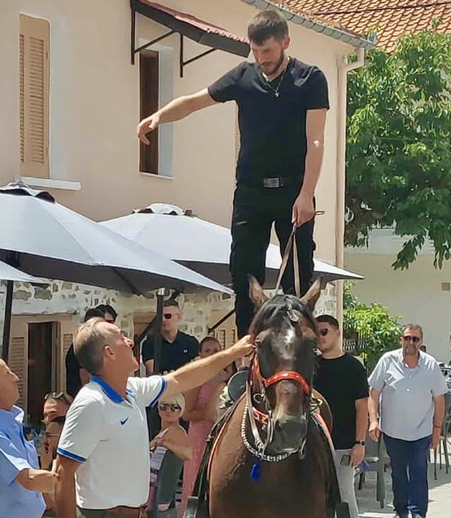 Οι εορταστικές εκδηλώσεις συνεχίστηκαν το μεσημέρι με τη μεγάλη παρέλαση ιππέων & το καθιερωμένο πατροπαράδοτο γλέντι στην κεντρική πλατεία & κορυφώθηκαν το απόγευμα με τον “Τρανό Χορό” του Αγίου Παντελεήμονα στα λιβάδια της Βλάστης.